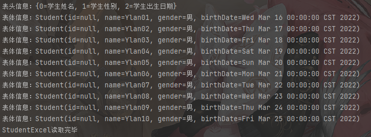 @Override public void invoke(Student student, AnalysisContext analysisContext) { System.out.println("表体信息:" + student); }