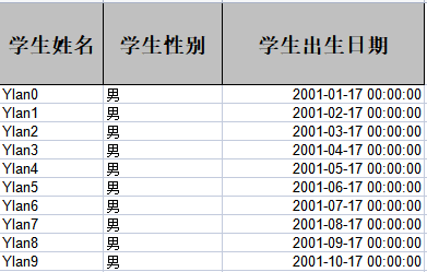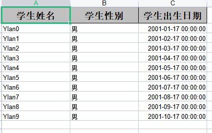 private List<Student> data() { ArrayList<Student> students = new ArrayList<>(); for (int i = 0; i < 10; i++) { Date date = Date.from(LocalDate.of(2001, i + 1, 17).atStartOfDay().atZone(ZoneId.systemDefault()).toInstant()); Student student = Student.builder().name("Ylan" + i).gender("男").birthDate(date).build(); students.add(student); } return students; } }