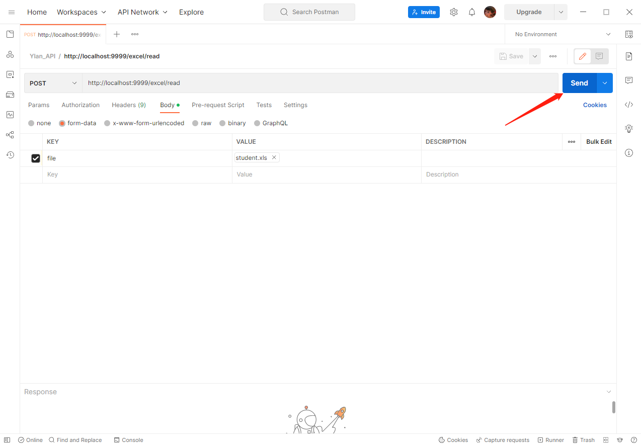 @ResponseBody @PostMapping("/read") public Map<String, String> readExcel(@RequestPart("file") MultipartFile file) { HashMap<String, String> map = new HashMap<>(); try { ExcelReaderBuilder read = EasyExcel.read(file.getInputStream(), Student.class, excelListener); ExcelReaderSheetBuilder sheet = read.sheet(); sheet.doRead(); map.put("message", "success"); } catch (IOException e) { map.put("message", "error"); throw new RuntimeException(e); } return map; } }