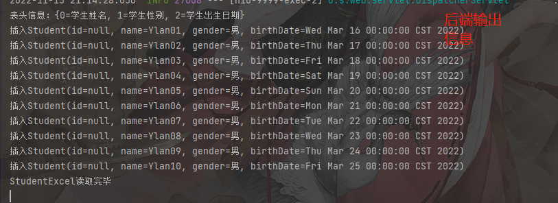 | @Service("studentService") public class StudentService { public void readExcel(List<Student> students) { students.forEach(student -> { System.out.println("插入" + student); }); } }