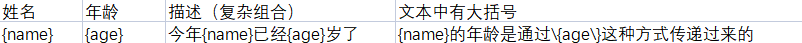 Excel表格中用**{}包裹表示要填充的变量,如果单元格文本中本来就有{},需要在括号前面使用斜杠转义{}。