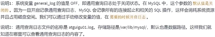 1 | SET GLOBAL general_log=off; # 关闭通用查询日志 |