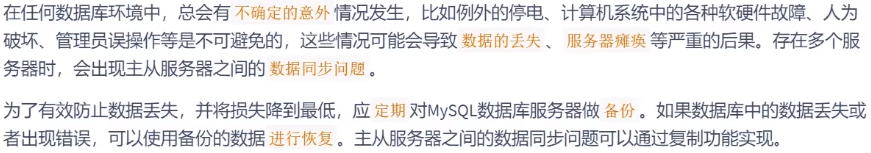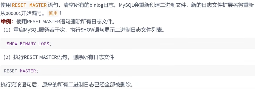 - 二进制日志:记录所有更改数据的语句,可以用于主从服务器之间的数据同步,以及服务器遇到故 障时数据的无损失恢复。