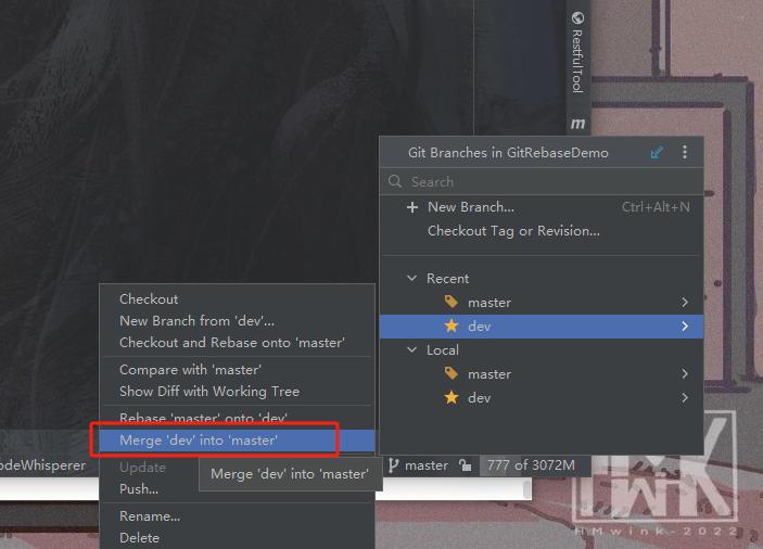 将master分支merge到dev分支上